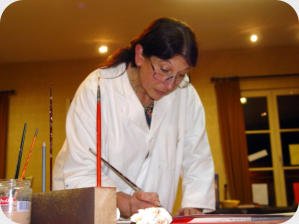 Et puis surtout, ses mains. Elle peint ...